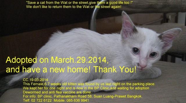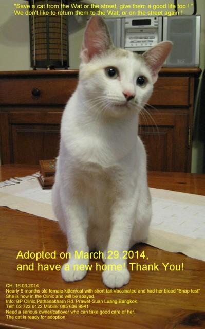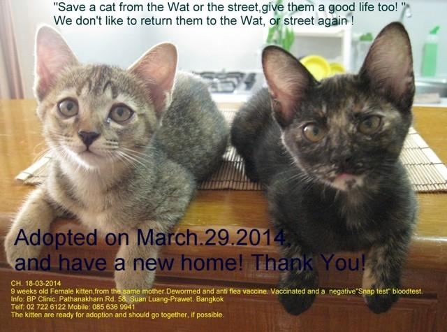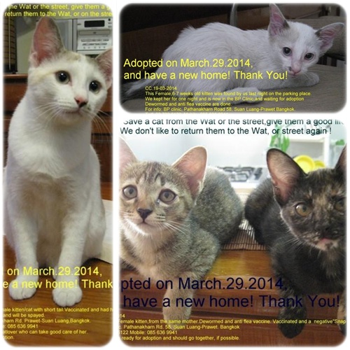 I would like to thank you and inform you that all the 4 kittenห/cats has found an owner and or home.