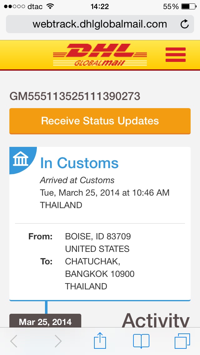 ถ่ายทอดสดกว่าจะเอาของออกมาได้น้ำตาแทบไหล ใจหายใจคว่ำ อยากจะไว้อาลัยให้ ตัวเอง หลังจากที่ทราบว่าของมาถึง ตั้งแต่วันที่ 25 มีนาคม ก็รอ จนไปรษณีย์ส่งใบให้ไปรับของออกจากศุลกากรด้วยตนเอง วันนี้ 3 เมษายน เ