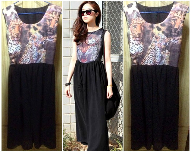 maxi dress cop Alexander McQueen ลายหน้าเสือ ตัดต่อกระโปรงสีดำ มีซับใน อก 32-34 เอว 28-30 สะโพกฟรี ยาว 46 นิ้ว