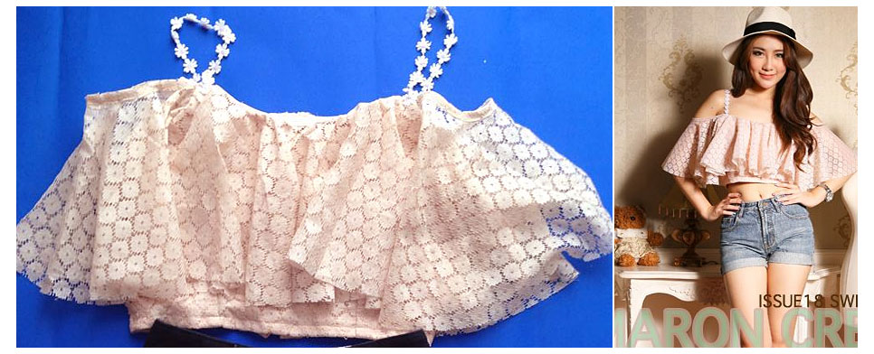 เสื้อเปิดไหล่ ลูกไม้ฉลุ แบรนด์ Maria Diamon ใส่แล้วเหมือนนางแบบใส่ค่ะ รุ่นเดียวกันเลย อก 32-34 ยาวจากบ่าประมาณ 15 นิ้ว