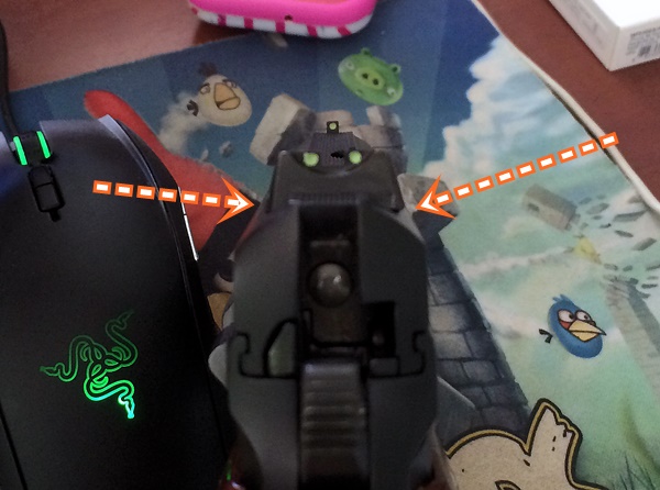 ปรากฏว่า เล็งกลางจะออกซ้าย เล็ง 1,2,3 จะเข้ากลางๆ ผมก็เลยคิดว่าต้องเป็นที่ศูนย์เล็งแน่ๆ เพราะพยายามยังไงก็เข้าซ้ายอยู่ดี