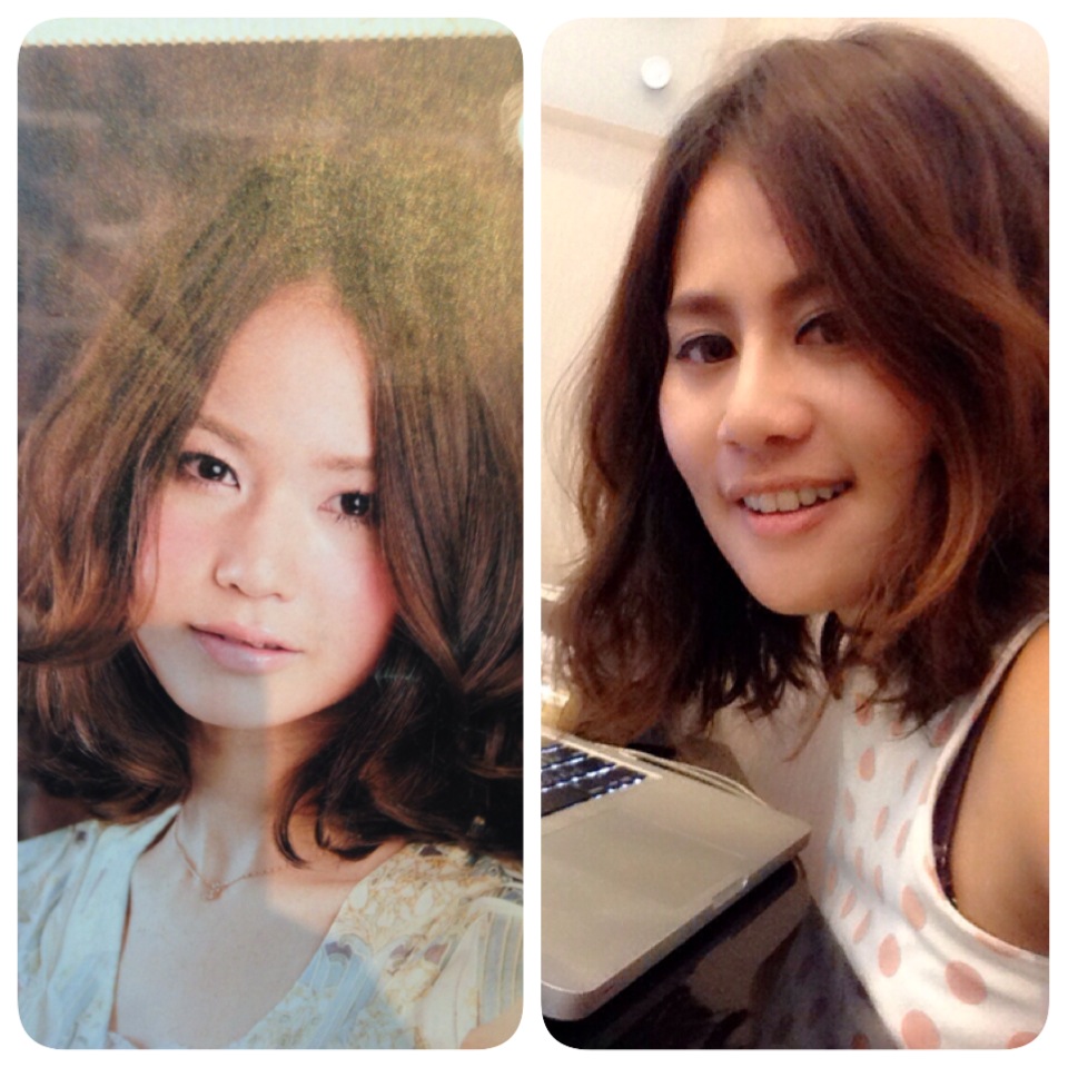 วันต่อมาไม่ได้สระผม ไม่ได้เซ็ทผม ลองเอาทรงผมเทียบกับแบบดูแล้วก็ยังพอใจอยู่ค่ะ ถึงแม้จะไม่เหมือนแต่ก็ยังพอรับได้