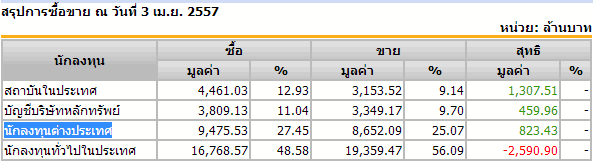 สรุปการซื้อขาย ณ วันที่ 3 เม.ย. 2557