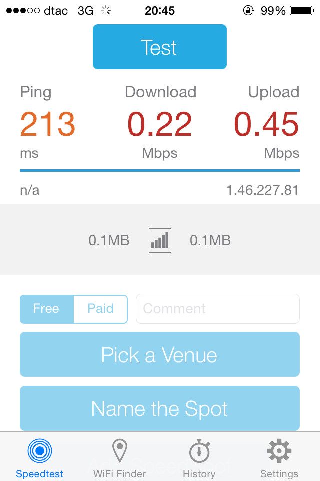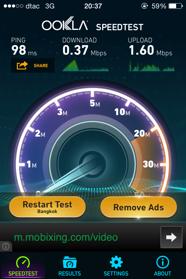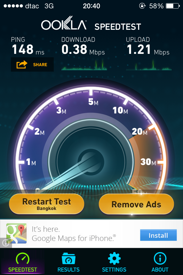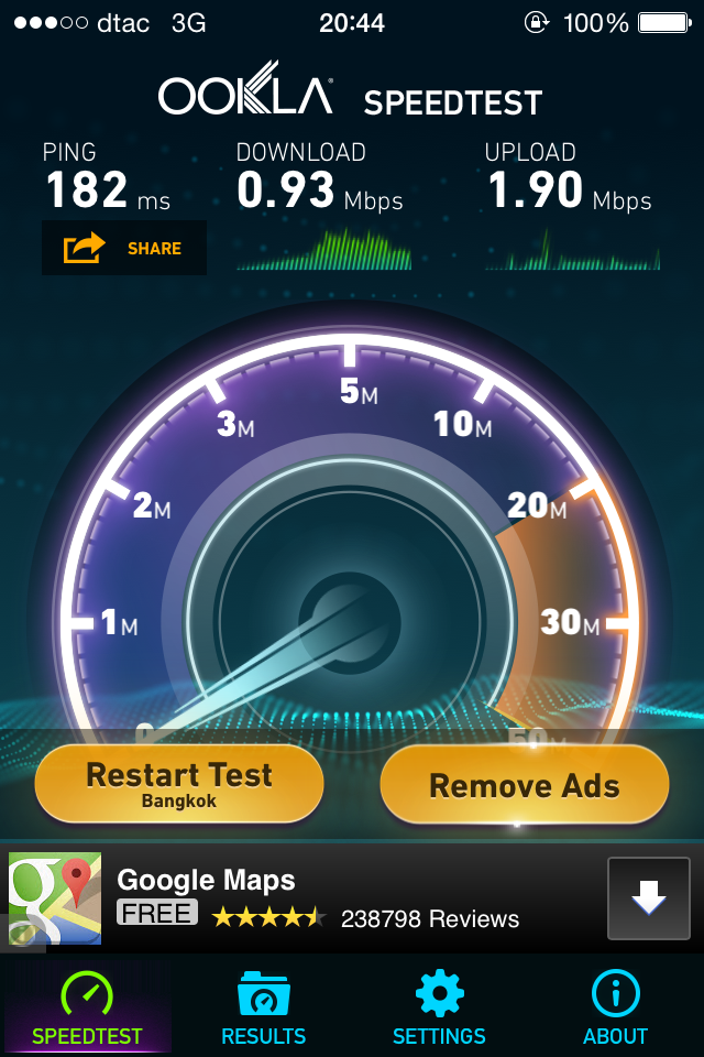 ก่อนหน้านี้ผมแทบไม่เคยได้ใช้ สามจี ที่เร็วเกิน 3Mb/s (นานๆทีจะ เกิน)555 เเละเมื่อวานผมได้รับข้อความ ว่าได้เปลี่ยนเป็น Trinet วันนี้จึงมาลองเทสสปีดดู ผลเป็นที่น่าประทับใจครับ เทสที่ รร.นารีรัตน์จัง