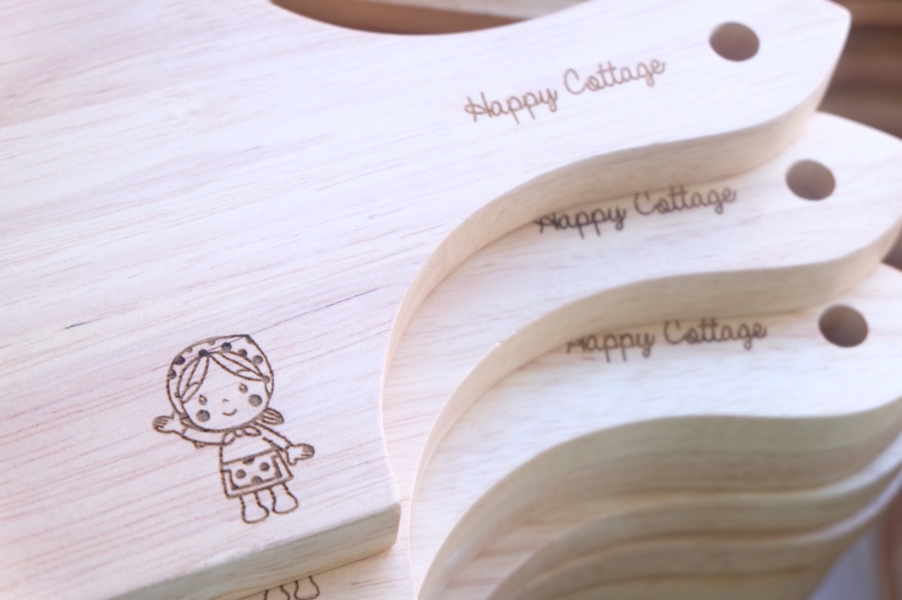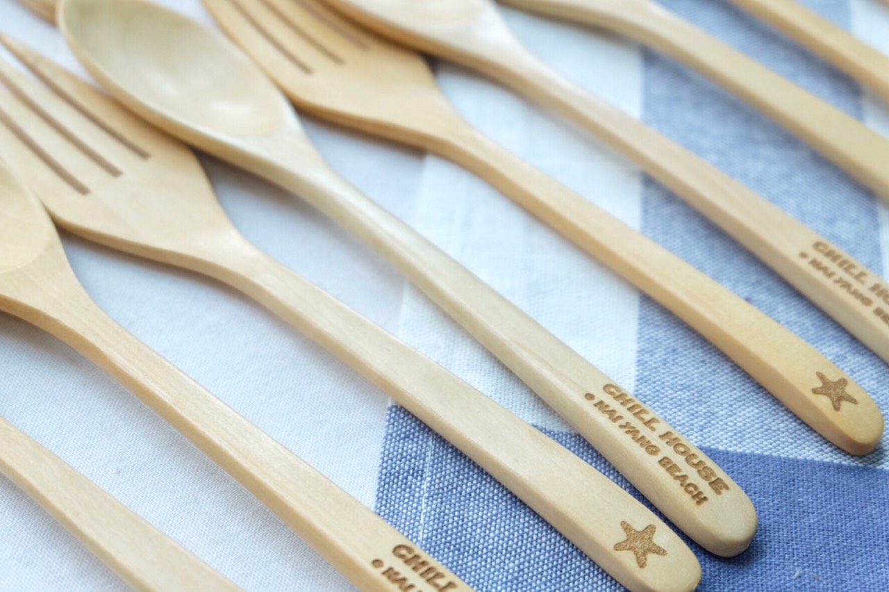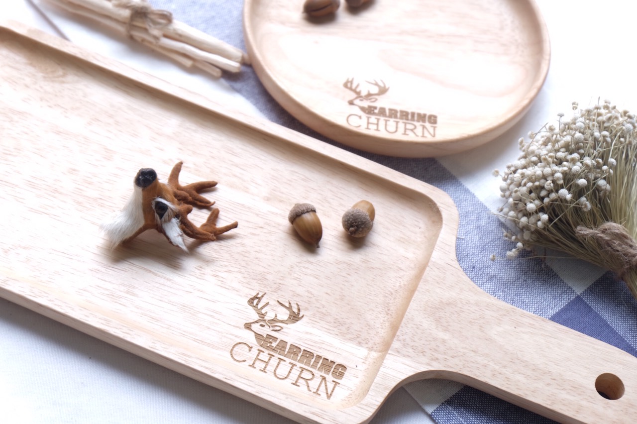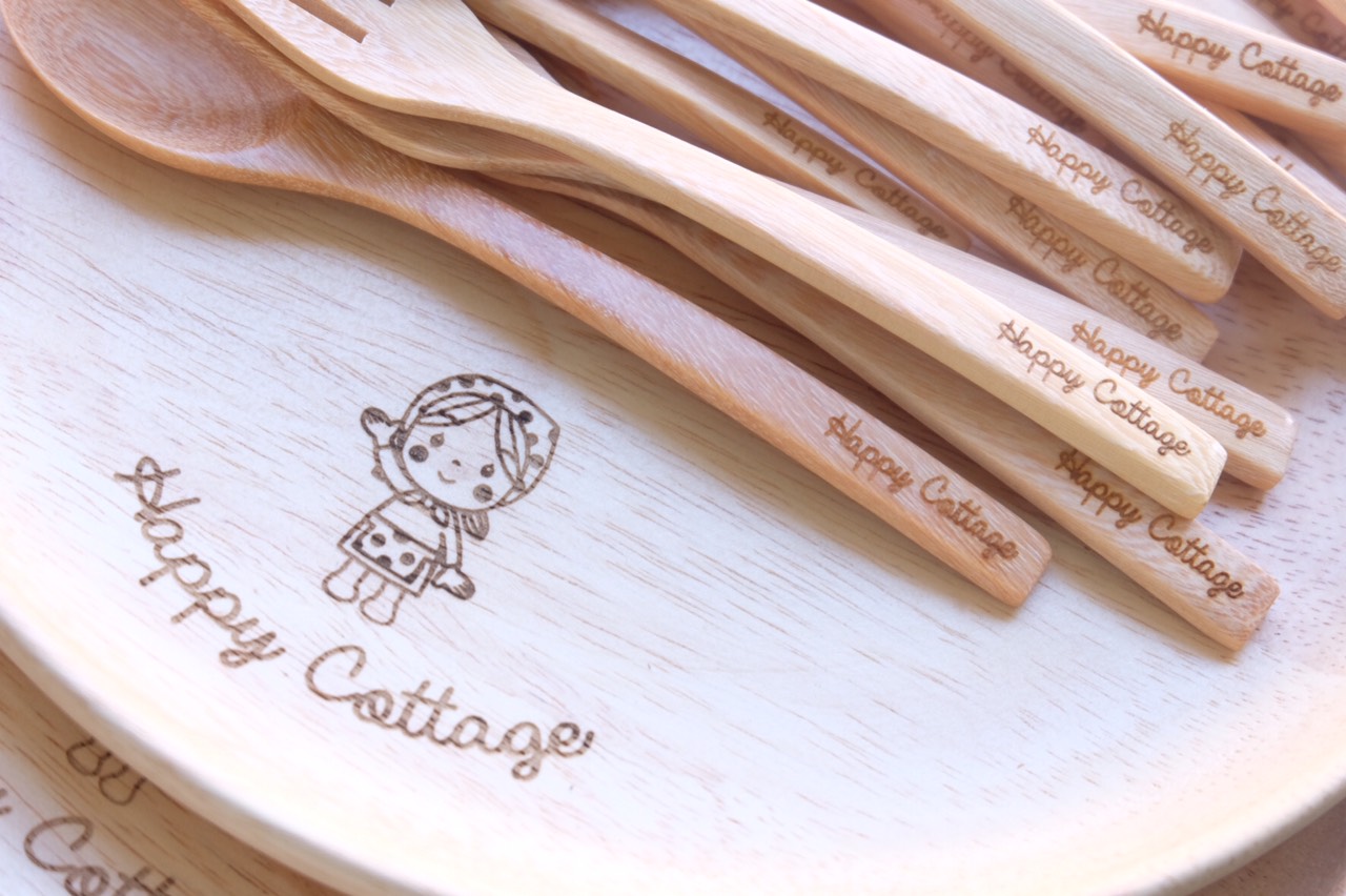 ประเภทจานไม้ ชามไม้ ช้อนไม้ ส้อมไม้ เขียงไม้ สามารถสั่งสลักชื่อ ข้อความหรือโลโก้ได้ (การสลักไม่มีขั้นต่ำ ชิ้นเดียวก็สลัก)