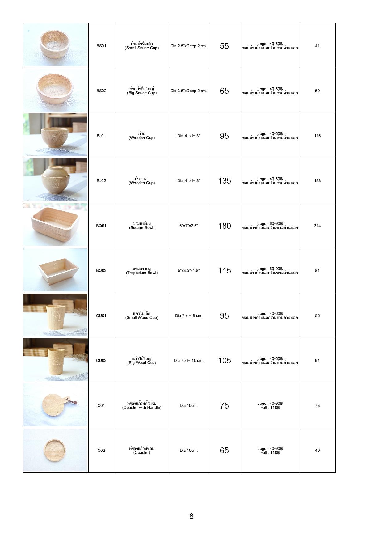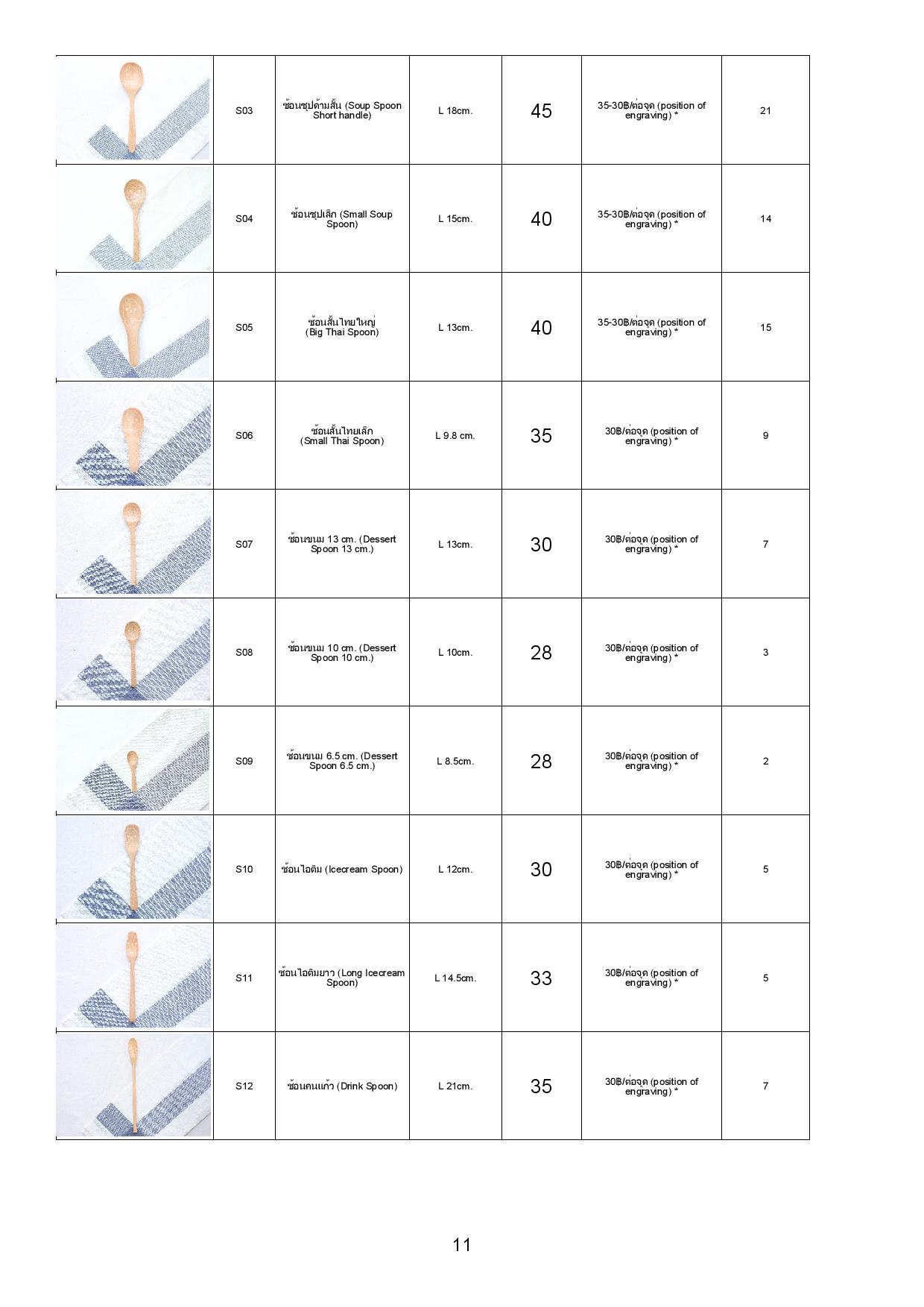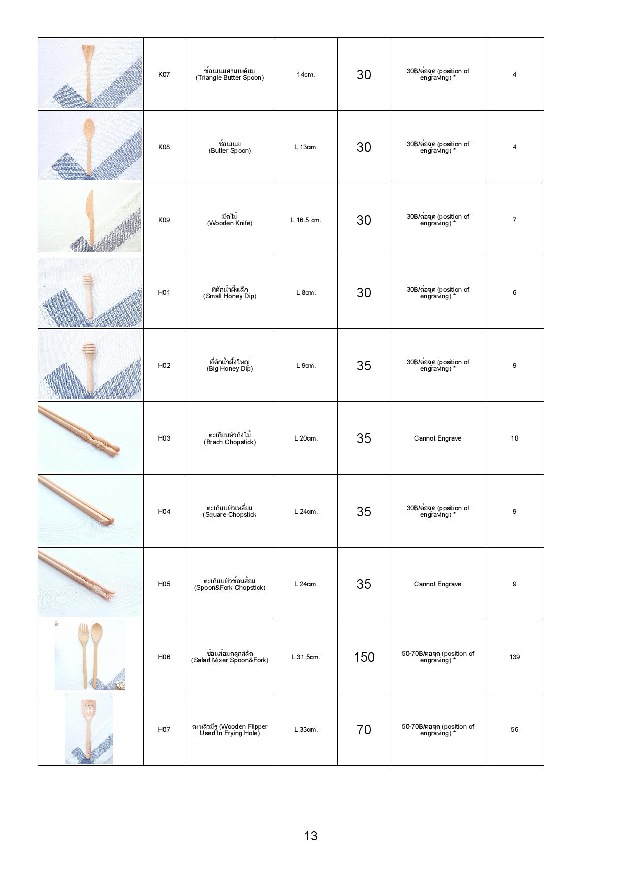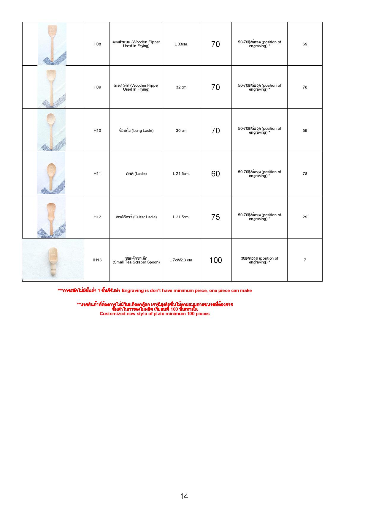 ประเภทจานไม้ ชามไม้ ช้อนไม้ ส้อมไม้ เขียงไม้ สามารถสั่งสลักชื่อ ข้อความหรือโลโก้ได้ (การสลักไม่มีขั้นต่ำ ชิ้นเดียวก็สลัก)