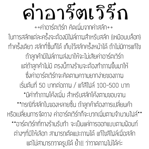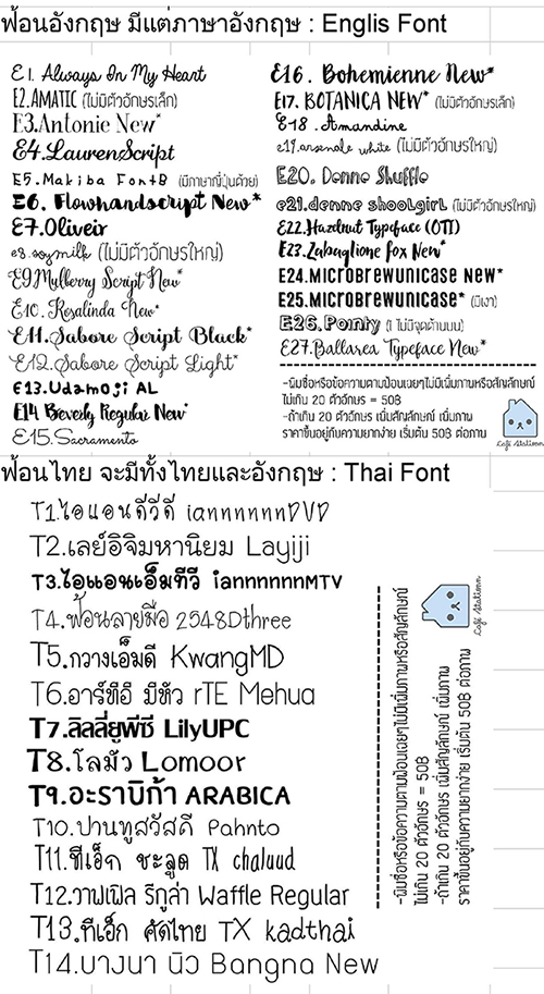 รับออกแบบชื่อ ข้อความ โลโก้แบบง่ายๆ มีฟ้อนให้เลือกตามนี้ มีค่าอาร์ตเวิร์ก เริ่มต้นที่ 50 บาท/ภาพ