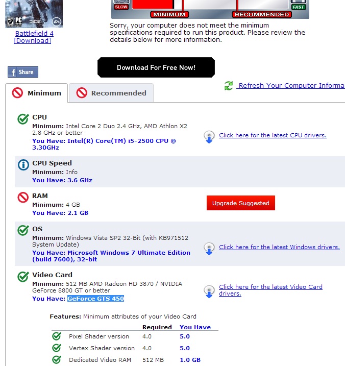 ห่างหายจากเรื่องเกมไปนานครับ แต่เห็นBF4 น่าเล่นดี แล้วก็ไม่รู้วงการคอมพัฒนาไปไกลแค่ไหนแล้ว เจ้าPCเครื่องเก่าผม เลยลองไปเช็คดูในเว็บ
