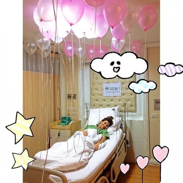 "อย่างที่เห็นค่ะ ท้องป่องมาก ก็นอยด์มาก ท้องไม่เคยป่องมาก่อน เจ็บมาก มันเหมือนกับว่าภายนอกเราพยายามที่จะเข้มแข็ง แต่ข้างในมันก็คือการผ่าตัด ไม่รู้คำเป็นทางการเขาเรียกว่าอะไร มันเป็นซีสน้ำจากรังไข่ เท่ามดลูกของเราเลย 7 เซนติเมตร มันจะใหญ่มาก"