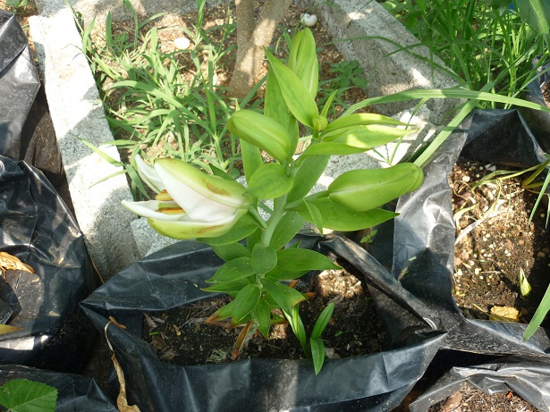 สวนหลังร้าน เป็นสวนครัว จะมีไม้ดอกชนิดเดียวที่ให้เข้าไปอยู่ได้คือลิลลี่ค่ะ เดิมๆ มี 7ต้นค่ะ จากพี่แนนนี่ Funky fox 1หัวค่ะ อีก 6วาสั่งจากเว็บเพจค่ะ พอมันโตเริ่มมีความรุ้สึกว่า อยากได้เพิ่ม5555555555