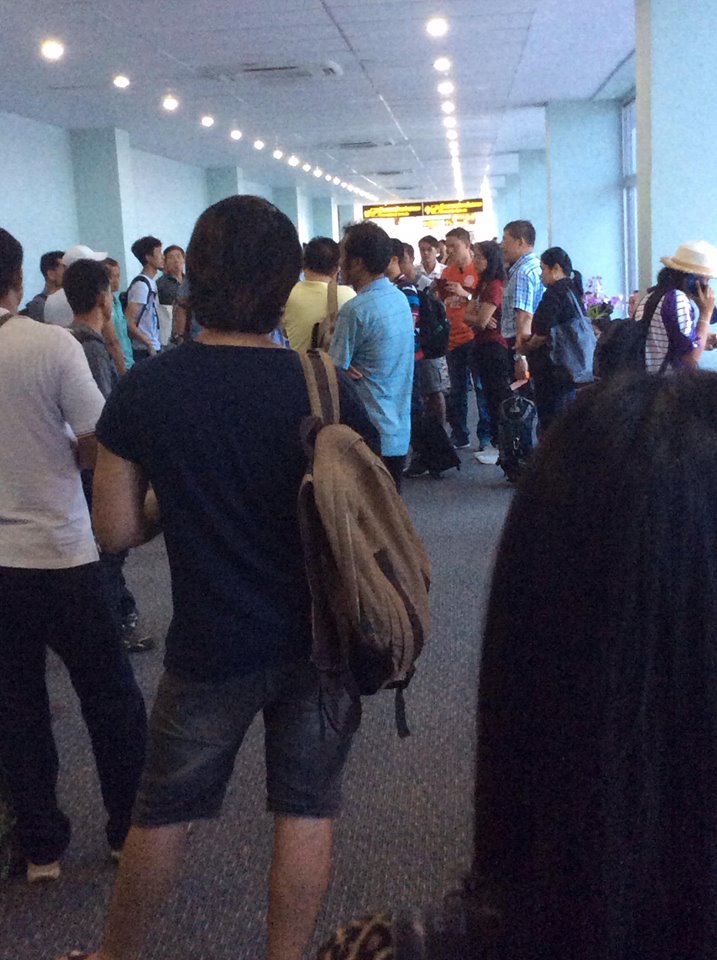 สแกนตั๋วเสร็จ แอร์ก็ขอให้ขึ้นเครื่อง หลายคนก็เดินกลับขึ้นไปเรียบร้อย