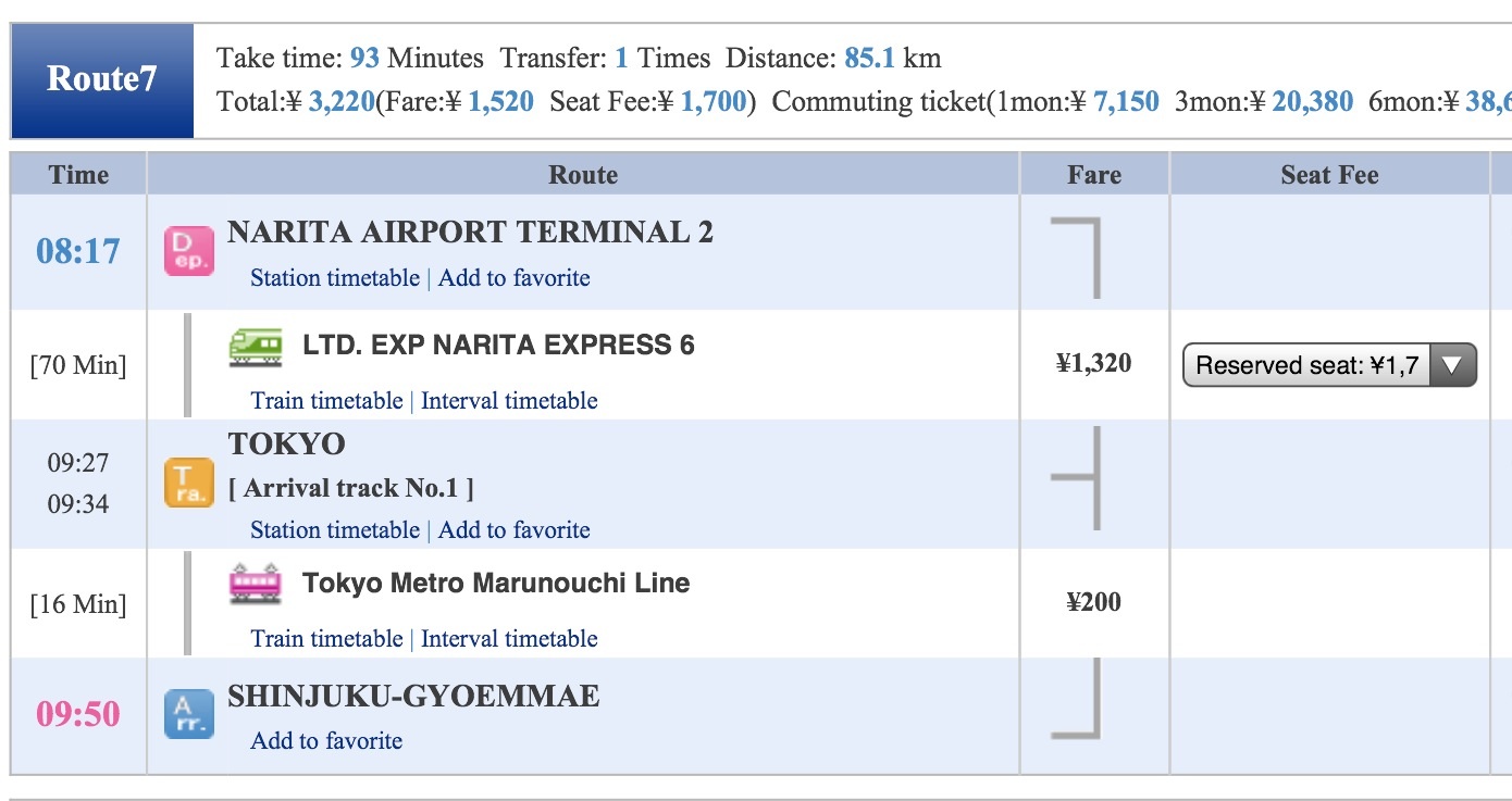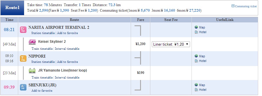 กะว่าจะเดินทางโดยใช้ Keisei skyliner โดย hyperdia บอกว่าต้องไปลงที่สถานี Nippori ก่อนแล้วจึงต่อ Yamanote ไปลง Shinjuku