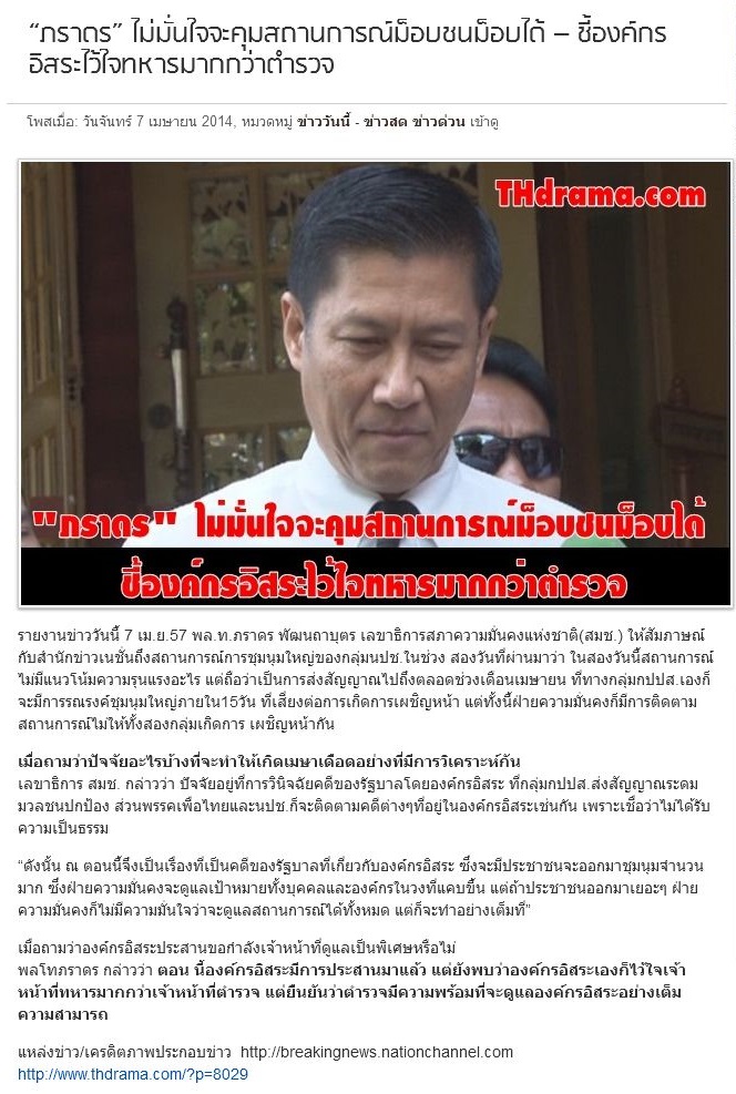 "ภราดร" ไม่มั่นใจจะคุมสถานการณ์ม็อบชนม็อบได้ - ชี้องค์กรอิสระไว้ใจทหารมากกว่าตำรวจ
