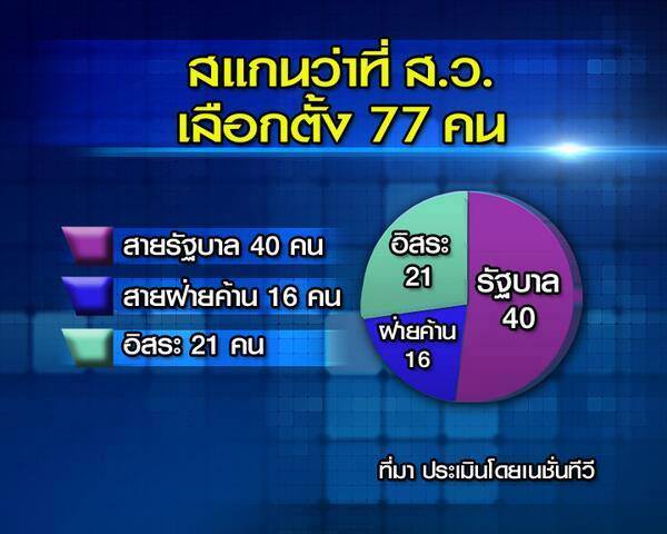 ว่าที่สว.เลือกตั้ง เพื่อไทย 40, ฝ่ายค้าน 16, อิสระ 21
