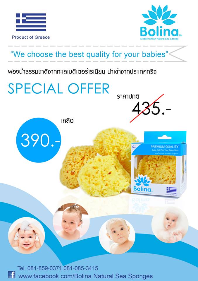 พิเศษที่ 2: ตั้งแต่วันนี้จนถึง 30 มิถุนายน 2557 เพียงแค่กด like&share -->https://www.facebook.com/pages/Bolina-Natural-Sea-Sponges/158342101031941 ได้รับส่วนลดเพิ่มอีก 10 บาท