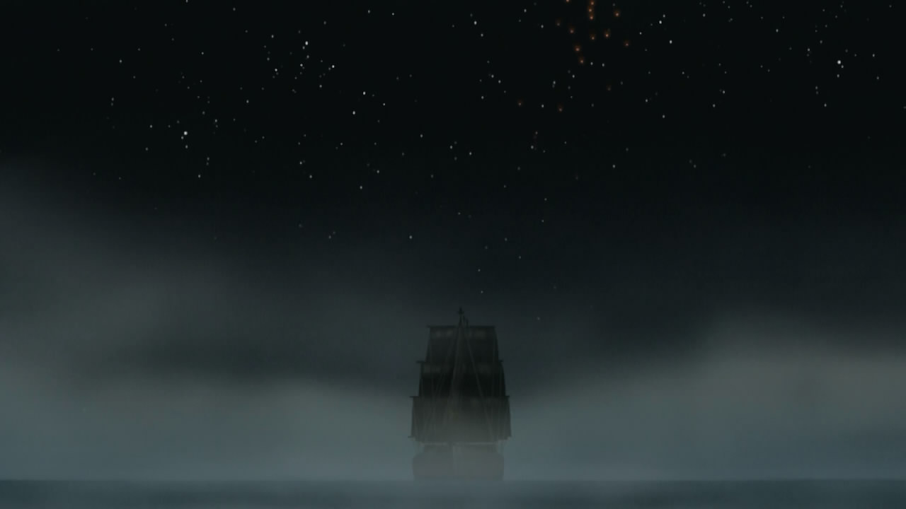 เรือจากอาณาจักรตะวัน ลอยลำอยู่กลางทะเลเพื่อรอนัดพบกับเรือจากอาณาจักรฝน (เรียกงี้ละกัน ง่าย ๆ) คอยยิงพลุสัญญาณเป็นระยะ