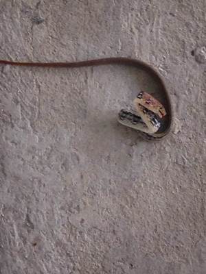 พอดีกำลังหลับอยู่ แล้วป๊าเข้ามาจะปลุกเราพอดี เจอแมวของเรากำลังตบงูอยู่แล้วเหมือนงูก็สู้เหมือนกัน เราหลับเลยไม่รู้ว่าแมวโดนงูกัดบ้างมั้ย ป๊ากวาดงูออกไปหน้าบ้าน แล้วงูสู้เลยจำเป็นต้องตีให้ตาย (ไม่ทราบว่