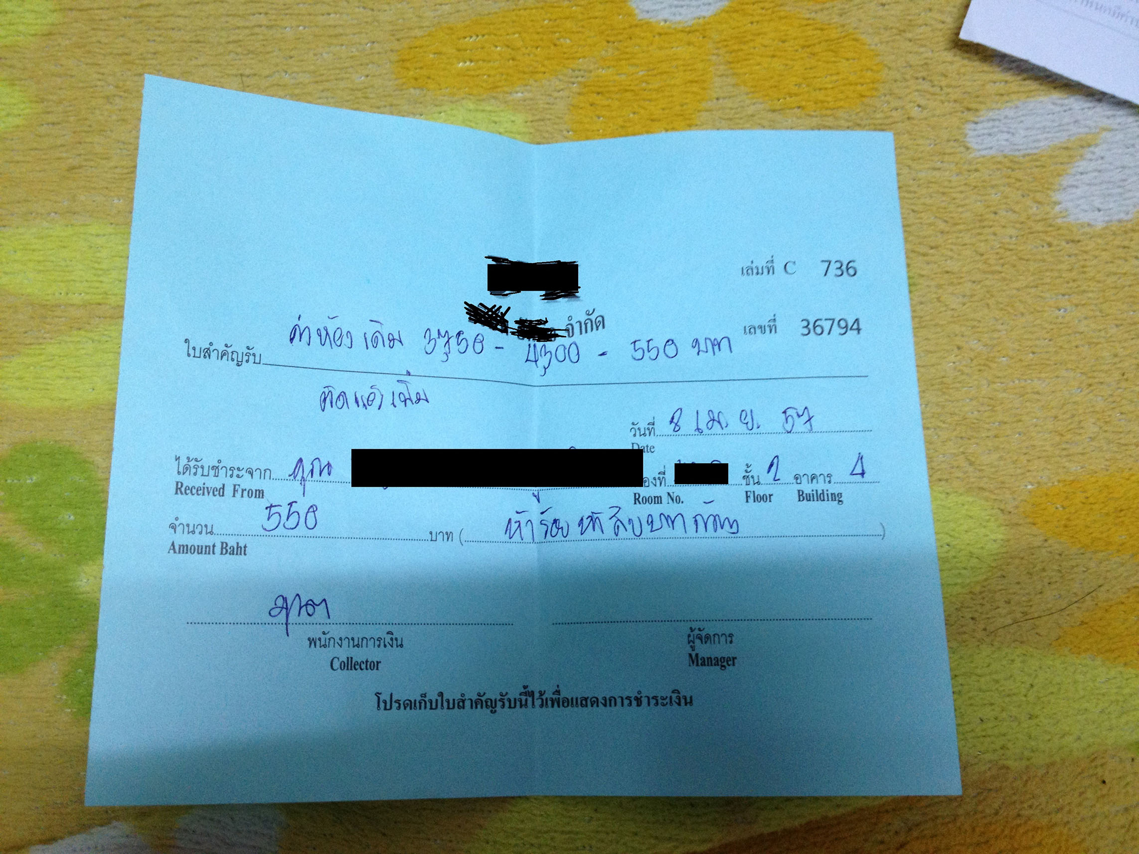 ใบเสร็จค่าหอพักครับ มีจ่ายล่าช้านิดนึง แห่ะๆ