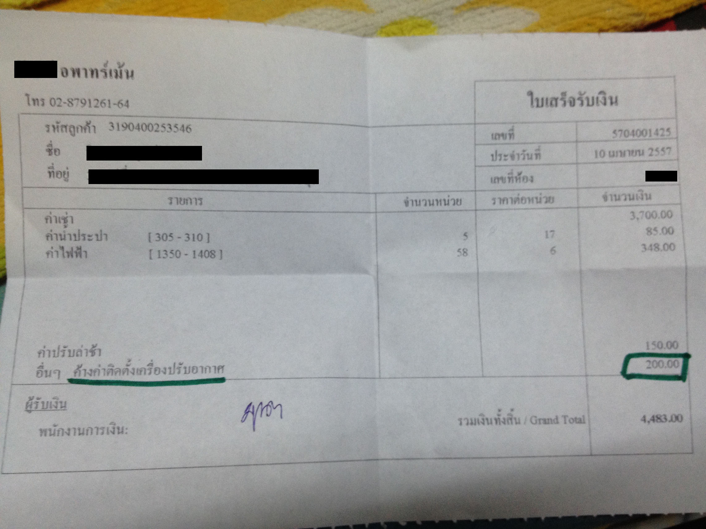 มีแต่ใบเสร็จที่จ่ายเงินค่าหอกับค่าติดแอร์ที่ได้บอกไป และก็ยังไม่ได้เซนต์สัญญาใหม่ด้วย