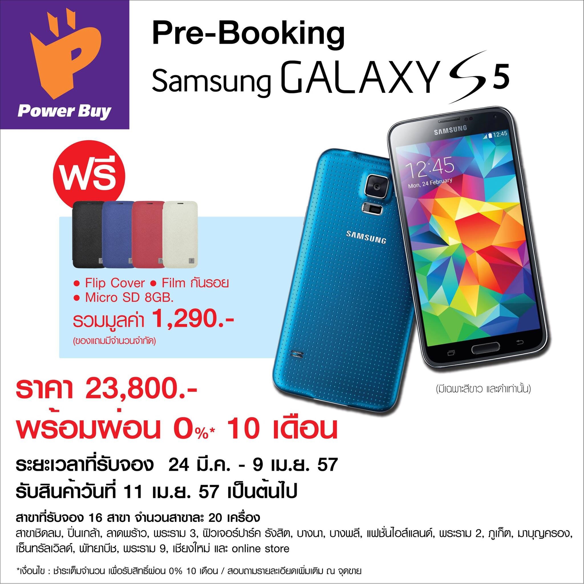 พอดีผมได้ทำการจองเครื่องSamsung Galaxy S5ผ่านทางพาวเวอร์บาย พร้อมทั้งรูดบัตรเครดิตเต็มจำนวนตามเงื่อนไขในการจอง 23,800บาทท