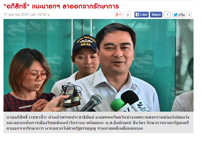 นายอภิสิทธิ์ พูดมาได้ " อยากให้ศาลยกคำร้อง ก็ให้ลาออก จาก สส. "