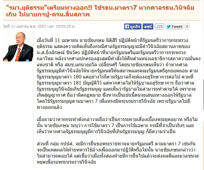 ถามคนที่รักในหลวงทุกคน เพราะในหลวงเคยตรัสว่าไม่ถูกต้อง นายกมาตรา 7 ไม่ถูกต้องตามแบบการปกครองตามระบอบประชาธิปไตย
