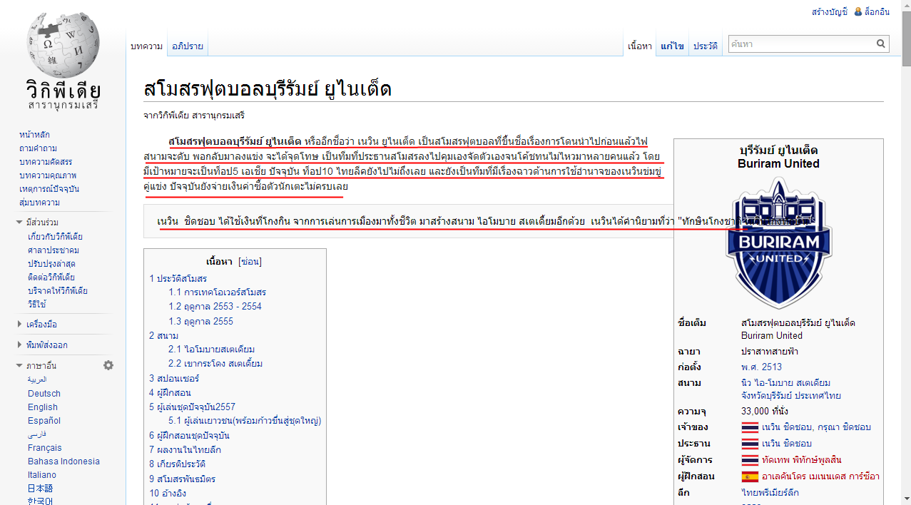 เชื่อว่าในห้องนี้น่าจะมีแฟนบุรีรัมย์อยู่หลายท่านครับ รบกวนเข้าไปแก้ไขด้วยนะครับ