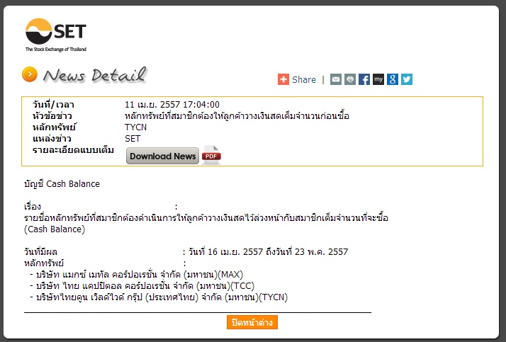 หุ้นติด แคช บาลาน ประจำงวดที่ 16เมษายนนี้