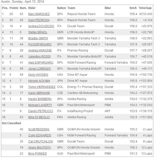 ผลการแข่งขัน MotoGP สนามที่2 Austin (America) Marquez ไร้คู่แข่ง