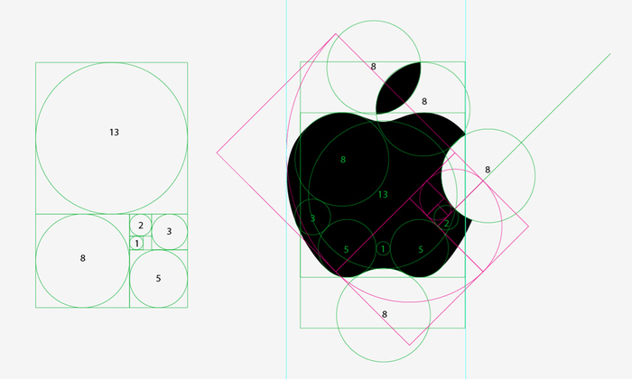 ภาพการออกแบบโลโก้แอปเปิ้ลที่มีการเอาวงกลมวางทับๆบนโลโก้