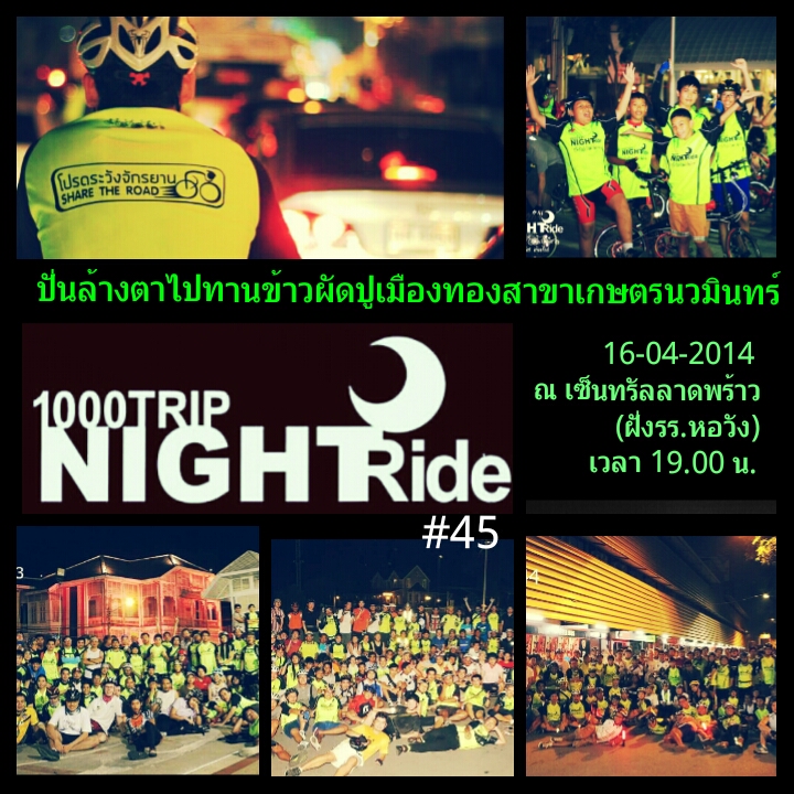 1000TRIP NIGHT Ride #45 "ปั่นล้างตาไปทานข้าวผัดปู" เจอกันค่ำวันพุธนี้ที่เซ็นทรัลลาดพร้าว(ฝั่งหอวัง) เวลา 19.00 น. นะครับ