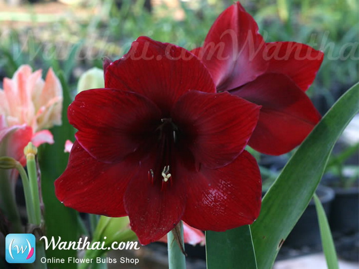 หัวว่านสี่ทิศ Amaryllis Royal Velvet ดอกสีแดงเข้ม เหมือนกำมะหยี่ ดอกกว้าง 16 ซม.