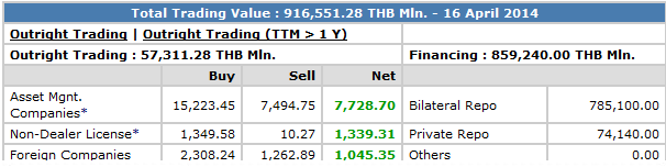 ตามประเภทนักลงทุน ประจำวันที่ 16 เมษายน 2557 ดังนี้