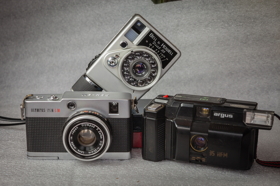 อีกตัวหนึ่งต้วล่างขวา กระป๋องก๋องแก๋งมาก Argus 35 HFM อัตโนมัติทั้งหมด ข้อดีคือเป็นได้ทั้ง ฟูลเฟรม และ ฮาล์ฟเฟรมในตัวเดียวกัน....