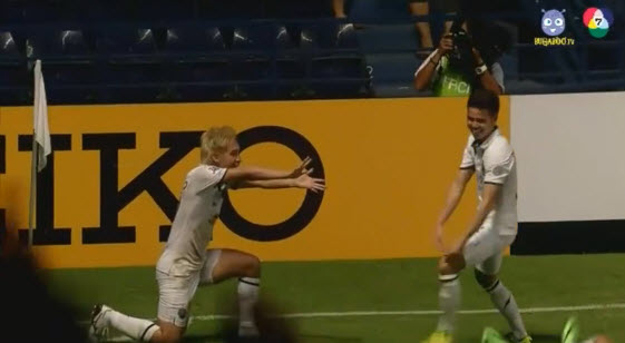 ภาพ+คลิป นักแตะปราสาทสายฟ้าบุรีรัมย์ปล่อยพลังใส่กันกลางสนามหลังจากเฉือนชนะ1-0 ลุ้นเข้าสู่รอบชิง AFC 2014
