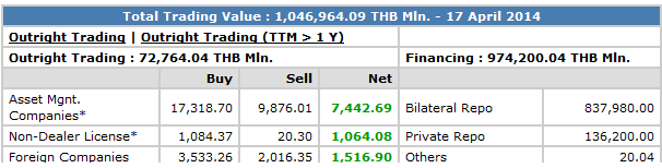 ตามประเภทนักลงทุน ประจำวันที่ 17 เมษายน 2557 ดังนี้
