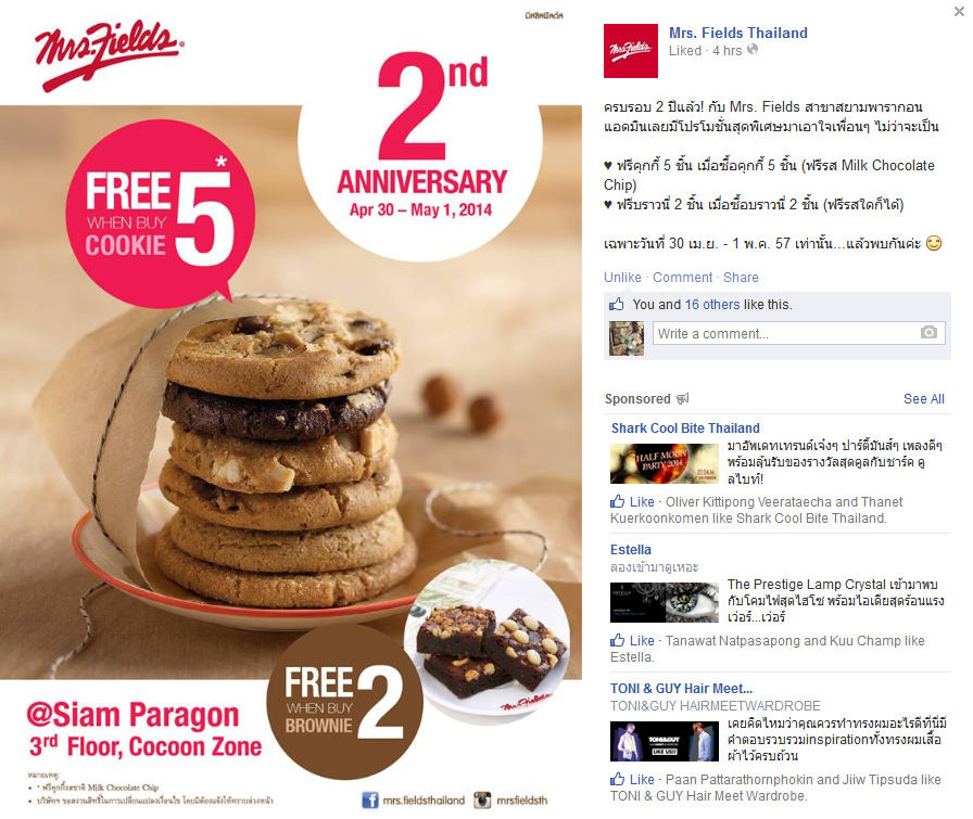 ตัวเราเอง ชอบทานของหวาน และเป็นแฟนพันธ์แท้ของ Mrs.Fields อยู่แล้ว พอเจอโปรโมชั่นโดนใจ
