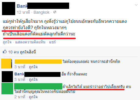 ถึงขนาด แยกแยะ ไม่ออก ว่า อะไร คือ อะไร คลั่งจนเสีย สติกัน ไปหมดแล้ว น่ากลัวมาก เมื่อวาน เห็นข่าว แม่ฟ้องลูก เกี่ยวกับ คดีหมิ่น วันนี้เห็น ลูกหมิ่น แม่ ไม่เข้าใจ สังคมไทย เริ่มเป็น อะไรที่ น่ากลัว ขึ้นทุกวัน