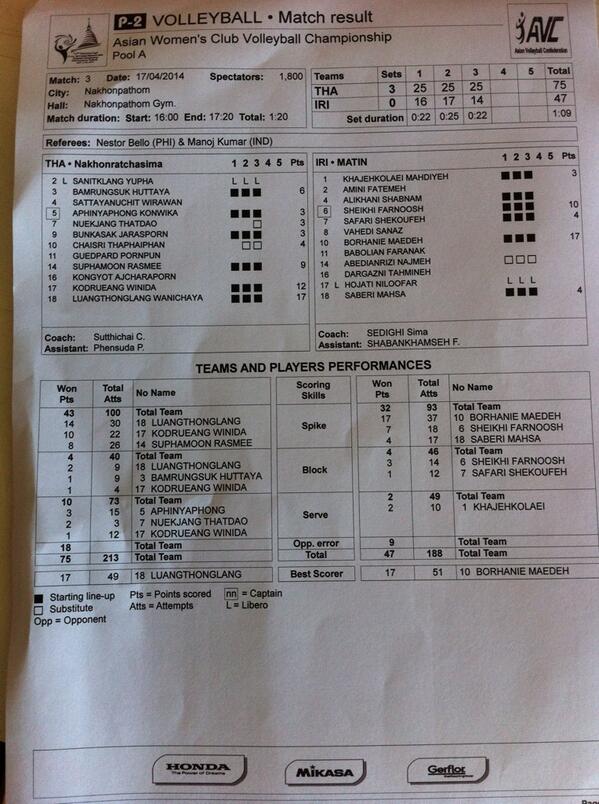 สถิตินัด ไทย - เวียดนาม ทัดดาว 16 จรัสพร 19 บะหมี่ 11 พู่ 6 วนิดา 5 รัศมี 3 แป้ง 2 เพียว 30 จากแชมป์ แฟนพันธ์แท้วอลเลย์บอลไทย