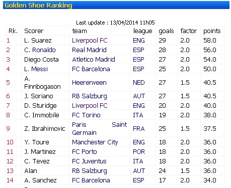 รางวัลรองเท้าทองคำปีนี้ คู่คี่สูสี ได้ลุ้นกันจนหยดสุดท้ายเลยเเฮะ