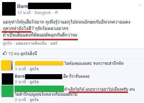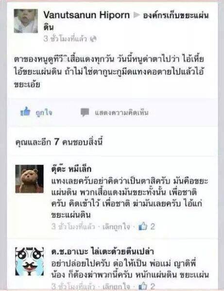 ท่านเห้นต่างพวกเมิง ทางด้านการเมือง ท่านไปร่วมชุมนุมกับคนเสื้อแดง..เมิงรับไม่ได้ โพสด่าท่านพร้อมๆกับเพื่อนในเพสเมิง..
