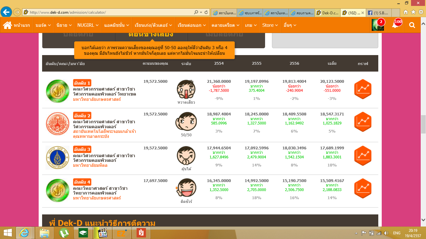 ตอนนี้สัดส่วนคะแนน admission ครบแล้ว และจากที่ดูคะแนนน่าจะติด วิศวะคอม ลาดกระบังค่อนข้างชัวร์เพราะลาดกระบังคะแนนไม่เคยเหวี่ยงค่อนข้างคงตัว