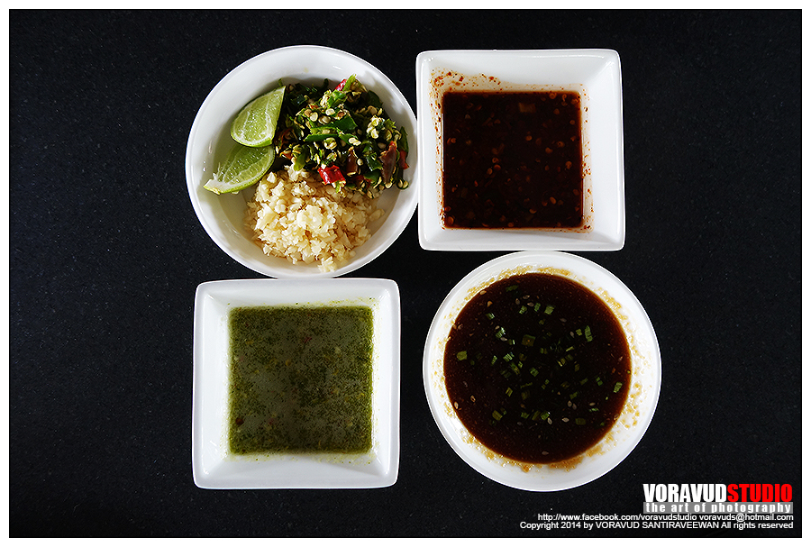 น้ำจิ้มมีด้วยกัน 3 แบบ คือ น้ำจิ่มเนื้อย่าง น้ำจิ้มซีฟู๊ด และน้ำจิ้มแจ่ม อร่อยทุกแบบเลยครับ เลือกตามชอบได้เลย