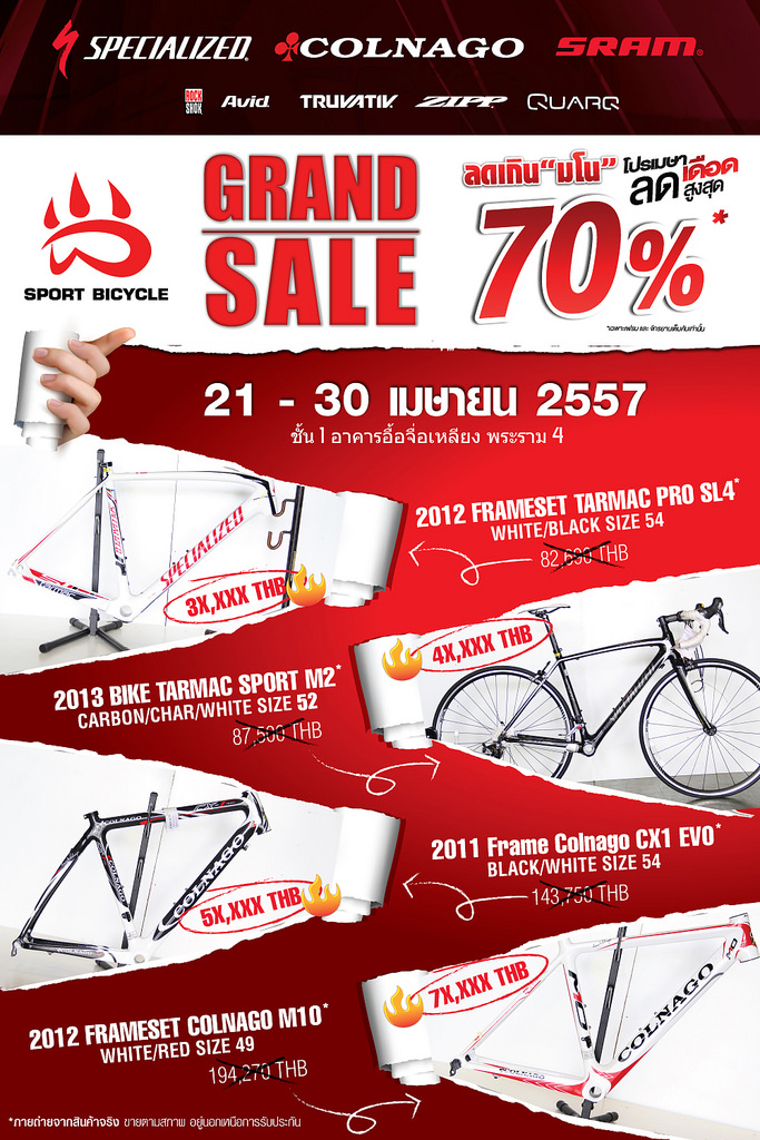 พรุ่งนี้ 21 เมษา มีงาน clearance ของ colnago specialized zipp