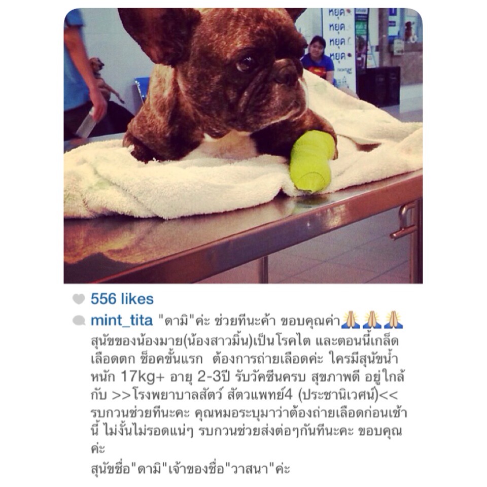 ใครเลี้ยงสุนัขที่แข็งแรง สุนัขของมิ้น มิณฑิตา ต้องการความช่วยเหลือค่ะ