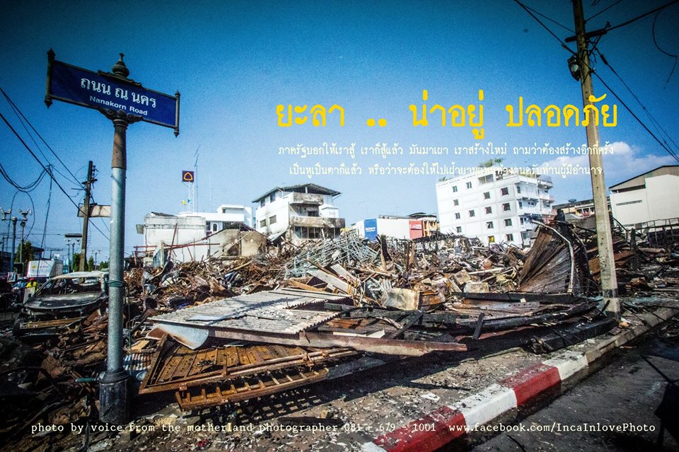 ที่ยังไม่สงบลง ครบรอบ " 10 ไฟใต้ " จนกลายเป็นเหตุการณ์รายวันที่บ้านเกิดของผม พบเหตุการณ์เกิดขึ้นเป็นประจำ ไม่ว่าจะเป็น การยิง การวางระเบิด การโจมตี การวางเพลิง ทั้งสิ้นสร้างสถานการณ์ความรุนแรงเกิดขึ้นทุกที นับจากวันนั้นถึงวันนั้น สรุป ตลอดระยะ 10 ปี ไฟใต้ 16,785 เหตุการณ์