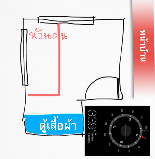 ตอนนี้เราหัวเตียงนอน ไปตามตำแหน่งในรูปเลยค่ะ แล้วมีคนทักมาว่ามันไม่ดีให้หันหัวเตียงใหม่ (บ้านเราเลขที่ 301)