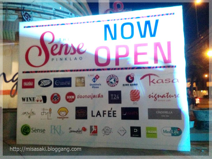 ป้ายด้านหน้า The Sense Pinklao มีบอกร้านที่เปิดอยู่ และ กำลังจะเปิด
