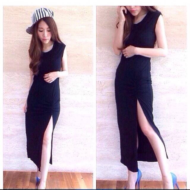 ชุดเดรสยาวกระโปรง ผ่าขาโชว์เรียวขาสุดเซ็กซี่ 250 บาทพร้อมส่งฟรี