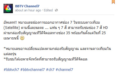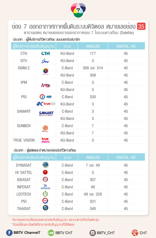 ช่อง 7 update ตารางหมายเลขรับชมของจานต่างๆ